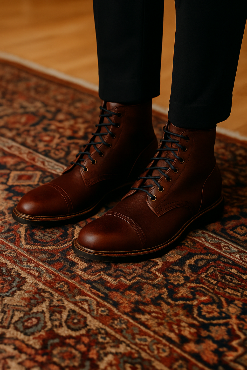 De Cavellis TimberCraft belichaamt de perfecte balans tussen ruige duurzaamheid en verfijnde esthetiek. Deze schoen is ontworpen om te presteren, of je nu een drukke dag op kantoor hebt of een weekendavontuur in de stad.